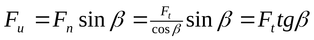 При визначенні сил, діючих на вали і осі з урахуванням сил тертя вихідним є положення про те, що сумарна сила взаємодіє між зубцями нахилена в площині ковзання під кутом тертя відносно спільної нормалі до поверхонь зубців. Можна використати формулу із збільшеними на величину кутів тертя кутами зачеплення.