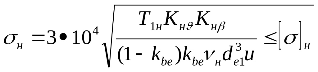 - в формулу для розрахунку контактних напружень в циліндричних колесах , записану через підставляють