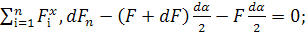 ним кутом dα , рис. 6, записуємо умови рівноваги по осях х та у,