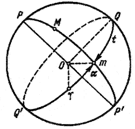 Измерение интервала времени заключается в определении часового угла t вспомогательной точки небесной сферы, численно равного двугранному углу, заключенному между плоскостью истинного меридиана и кругом склонения вспомогательной точки.