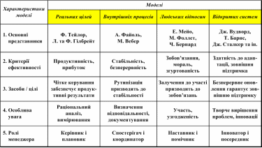 Основні характеристики моделей менеджменту у концепції "конкуруючих цінностей" Г. Куінна представлена у табл. 2.1.