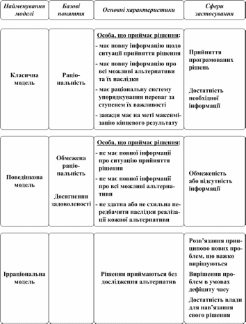 В теорії управління вирізняють три основні моделі прийняття рішень: