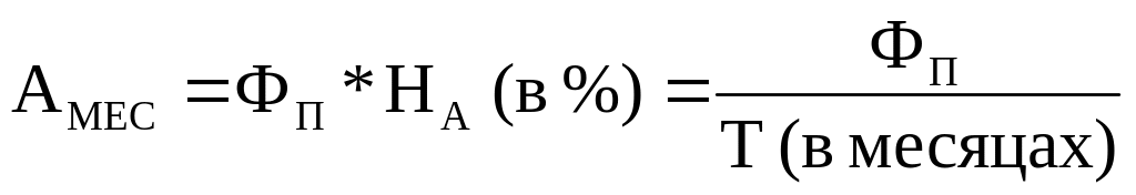 амортизация начисляется равными ежегодными и, соответственно, ежемесячными суммами;