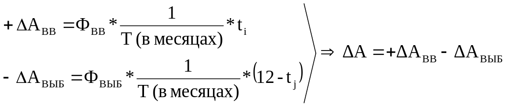Таким образом расчёт амортизации по различным вводимым и выводимым группам основных фондов будет осуществляться по следующим формулам: