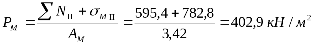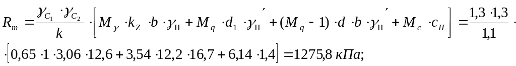 2.Определяем расчетное сопротивление на уровне подошвы массива: