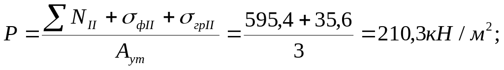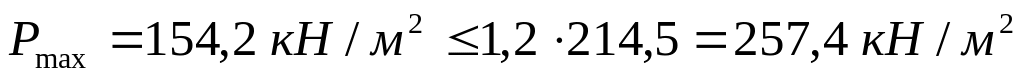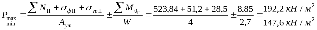 5. Определяем краевые давления, действующее под подошвой фундамента: