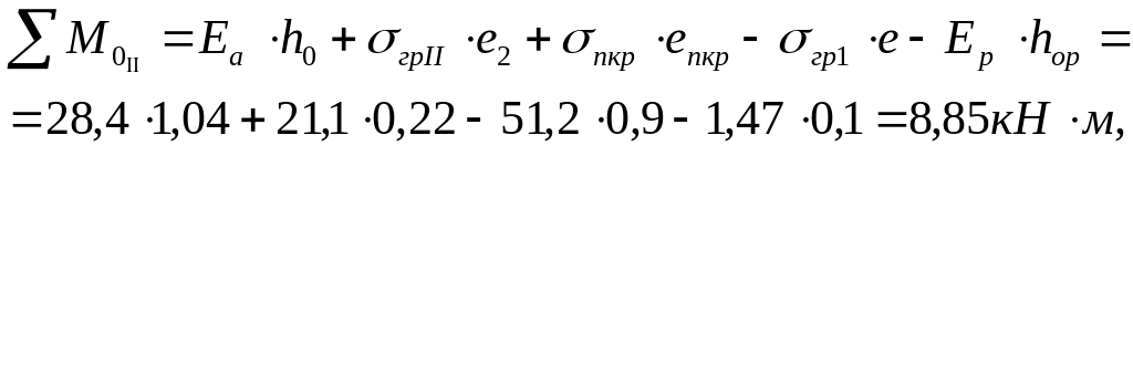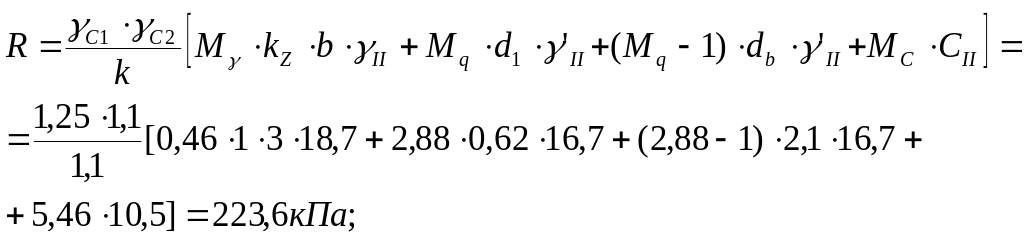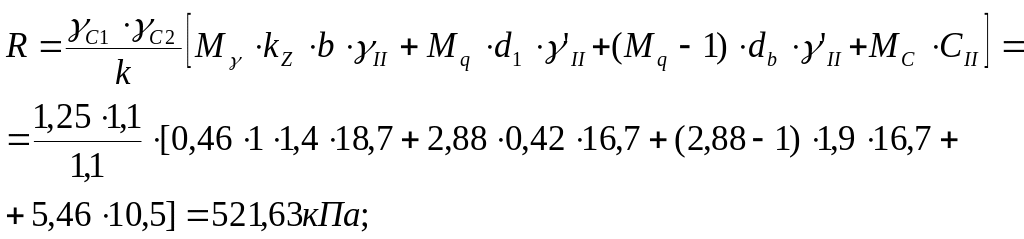 СII = 10б5 кПа - расчетное значение удельного сцепления грунта, залегающего непосредственно под подошвой фундамента;