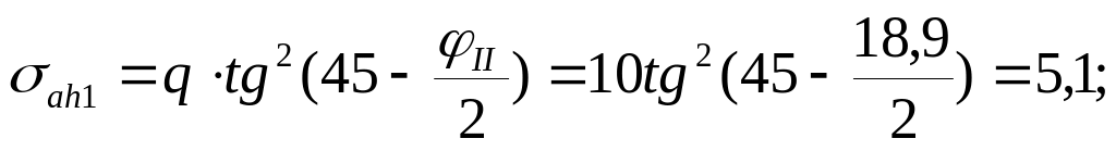 Определим напряжение возникающее на уровне земли и на уровне подошвы фундамента.