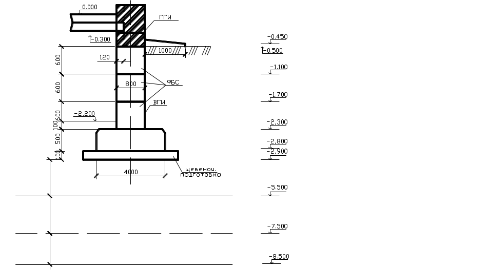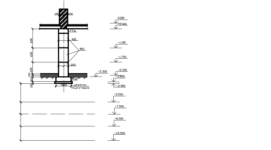 3.2.4. Расчет ленточного центрально-нагруженного фундамента под внутреннюю стену в подвальной части здания. Сечение 3-3.