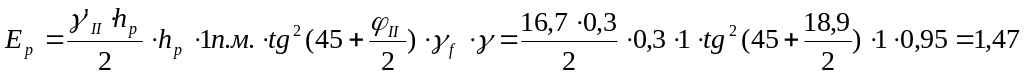 - коэффициент надежности, принятый равным 1,1 т.к. прочностные характеристики грунта приняты по табл. СНиП;