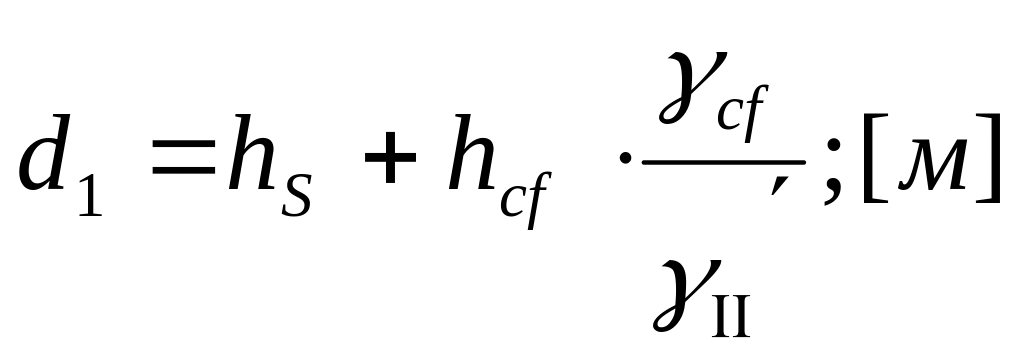 - осредненное расчетное значение удельного веса грунтов, залегающих выше подошвы фундамента;