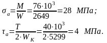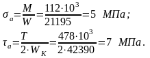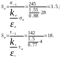 Коэффициенты запаса по нормальным и касательным напряжениям: