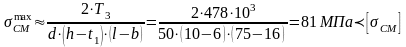 Напряжения смятия и условие прочности по формуле: