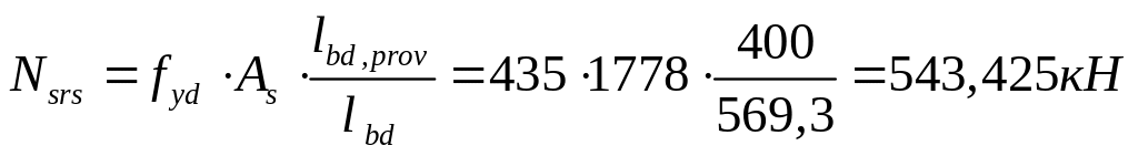 Расчёт арматуры в промежуточном узле производят по линии отрыва АВС на действие продольной силы Nsd3.