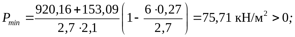 Условия выполняются, следовательно, принятые размеры фундамента достаточны.
