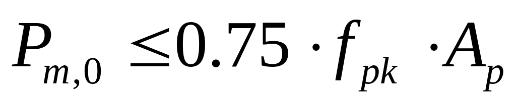 Среднее значение усилия предварительного обжатия Рm.t в момент времени t>t0 ( с учетом всех потерь) при натяжении арматуры на упоры Pm,t=Pm,0 - Δ Pt(t) , (55) Условие предварительного обжатия Pm,t должно удовлетворять условиям: Pm,t 0,65·fpk Ap , (56) Pm,t P0 100Ap , (57)