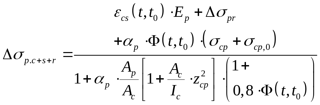 zср – расстояние от точки приложения усилия предварительного обжатия до центра тяжести бетонного сечения(для случая центрального растяжения zср=0)