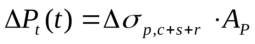 - усилие предварительного напряжения с учетом потерь, реализованных к моменту обжатия бетона: