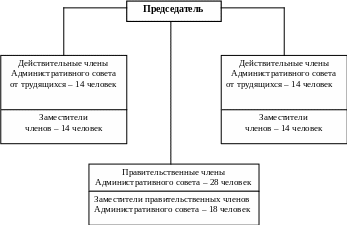 Административный совет, как и Конференция, имеет трехстороннее представительство и состоит из 56 человек: 28 представителей правительства, 14 трудящихся и 14 предпринимателей (рис.13.6).