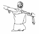Не меняя достигнутого положения, производится постепенная ротация плеча за предплечье, которое используется как рычаг, кнаружи до тех пор, пока предплечье не станет во фронтальную плоскость туловища.