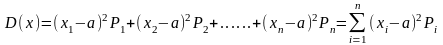 Дискретті кездейсоқ шаманың дисперсиясы деп шаманың барлық болатын мәндерінің математикалық күтілуден ауытқуларының квадраттарының олардың байқалу ықтималдығына көбейтінділердің қосындысы.