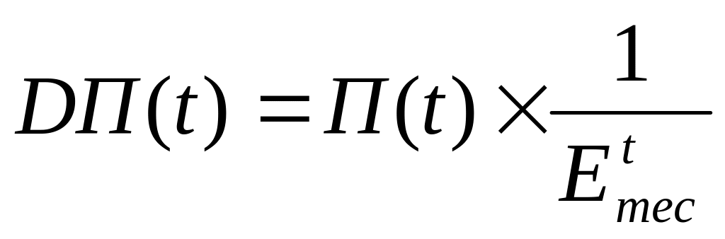 Продисконтированные П(t) (DПI(t)) и 0(t) (DО(t)) для конкретного периода (месяца) вычисляются по формулам: