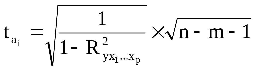 12. Значение t-критерия Стьюдента для коэффициента уравнения множественной регрессии рассчитывается по формуле: