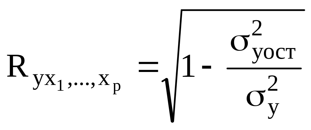 – множественный коэффициент корреляции и множественный коэффициент детерминации;