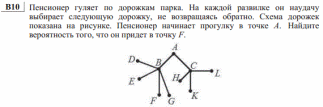 На рисунке изображён лабиринт. Паук заползает в лабиринт в точке «Вход». Развернуться и ползти назад паук не может, поэтому на каждом разветвлении паук выбирает один из путей, по которому ещё не полз. Считая, что выбор дальнейшего пути чисто случайный, определите, с какой вероятностю паук придёт к выходу D.