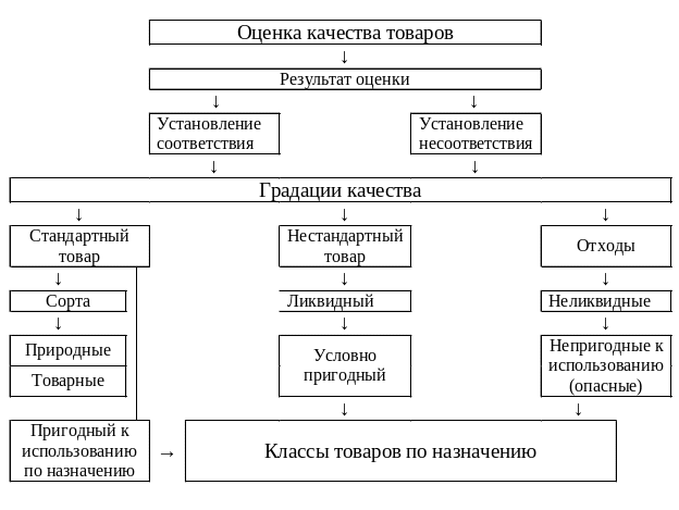 Рисунок 3.1. Взаимосвязь оценки качества, градаций качества и классов товаров по назначению