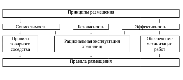 Анализ приведенных в табл. 5.2 достоинств и недостатков методов размещения показывает, что идеальных, не имеющих недостатков методов не существует. Критериями выбора метода размещения могут служить: сохраняемость товаров (потери) с учетом их характеристик, экономическая эффективность (затраты на упаковку, оборудование, расход электроэнергии), а также эффективность использования складских площадей. Указанные критерии определяют область применения разных подгрупп, видов и разновидностей методов.