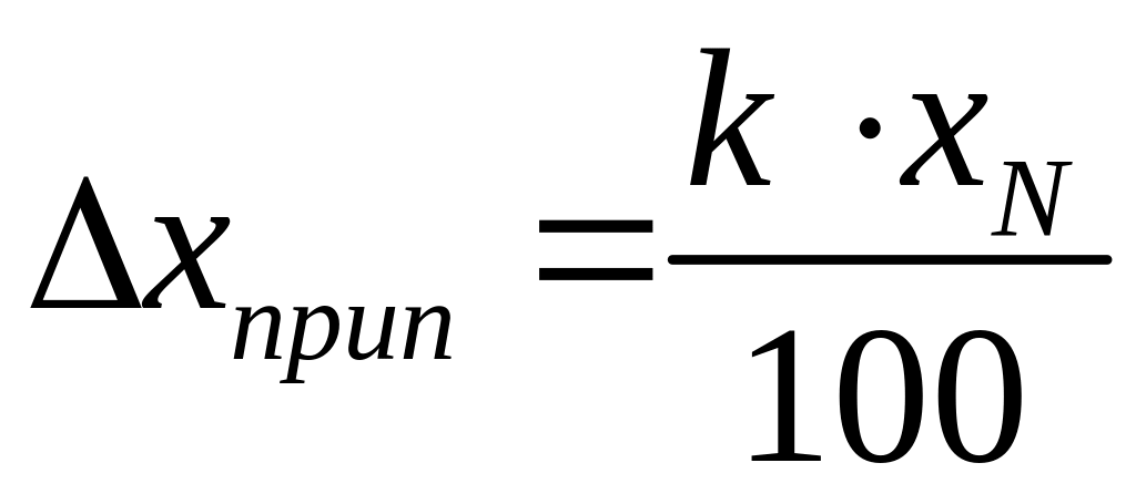 де k - клас точності приладу, x - значення, нормуюче рівень верхньої межі і показання приладу.