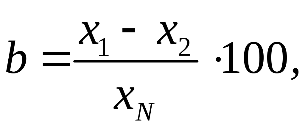 де x1 і x2 - значення вимірюваної величини при прямому і зворотному напрямках підходу до даної точки вимірювання; xN - значення приладу, що нормує.
