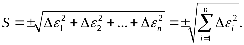 Обчислена в такий спосіб похибка одержала назву середньої квадратичної похибки. Позначивши похибки різних елементів, що входять у вимірювальну систему, через i, де i = 1, 2, …, n, відповідно до (5.7) одержимо: