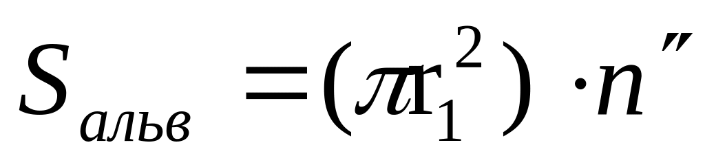 внутрішньої поверхні легень (альвеол), вкриту за t років куріння шаром частинок тютюнового дьогтю, узявши радіус однієї частинки рівним