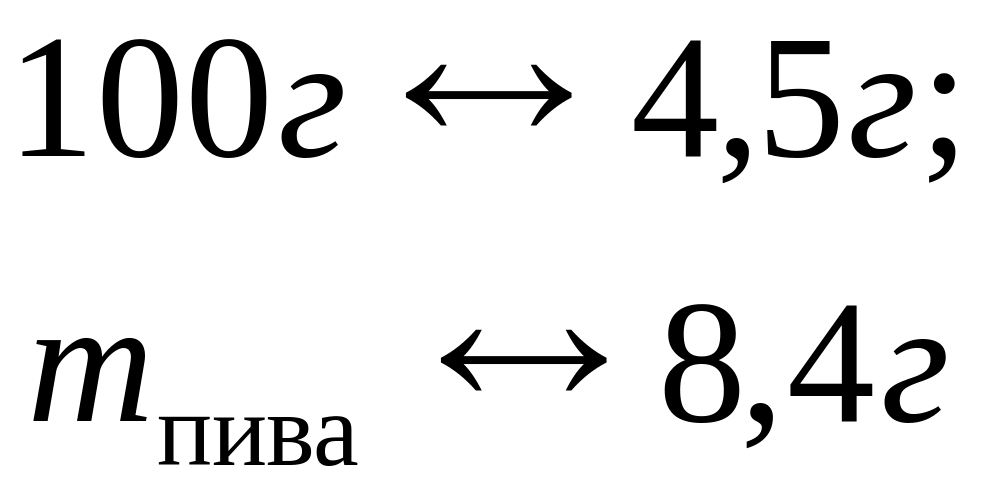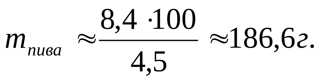 Ураховуючи те, що вміст алкоголю в світлому пиві становить 4,5%, складаємо пропорцію: