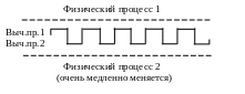 Ясно, что если переключения процессора в схеме 2 происходят достаточно быстро и если скорость обработки информации существенно выше, чем скорость протекания физических процессов, то переключений можно и не заметить, и схема 2 будет напоминать схему 1 по своему результату.