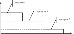 Если в качестве уровня наблюдения взять уровень инструкций, то схемы 1) и 2) будут последовательными. Приведенный язык описания процессов используется, иногда, для формализации постановки задач синхронизации и взаимодействия процессов.
