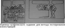 Тестирование иллюстрации заключается в том, что участникам исследования демонстрируется определенная иллюстрация (рисунок или фотография), изображающая людей, поставленных в типичную ситуацию и решающих какие-то проблемы, и просят описать на нее их реакцию. Исследователь анализирует содержание этих описаний с целью определения чувств, реакций, вызываемых данной иллюстрацией. Этот метод используется при выборе наилучших вариантов рекламы, иллюстраций для брошюр, изображений на упаковке и т.п., а также сопутствующих им заголовков.