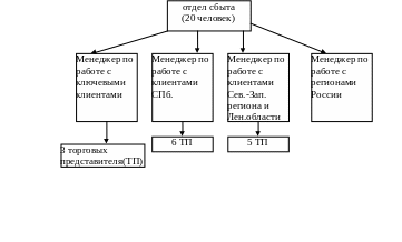 Коммерческий отдел включает в себя отдел закупок и отдел сбыта, он ведет всю работу по закупкам и оптовой продаже товаров, организует товародвижение, руководит складской и транспортно-экспедиционной деятельностью. Подразделение коммерческого отдела, занимающееся продажами, подразделяется на сектора, которые ведут работу с покупателями в зависимости от их территориального местонахождения. Эти сектора возглавляются главными менеджерами, которые в свою очередь подчиняются коммерческому директору.