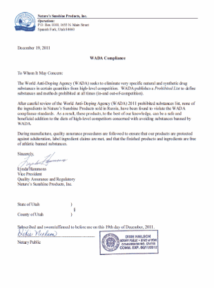 Все продукты компании «Nature’s Sunshine Products» производятся по международным стандартам качества ( GMP,TGA, FDA) и имеют международные АНТИДОПИНГОВЫЕ сертификаты: