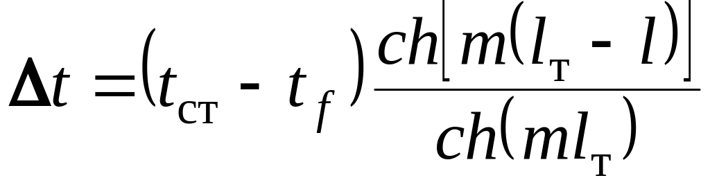 Розв’язання диференціального рівняння (7.10) при граничних умовах (7.11) дає такий вираз для різниці температури: