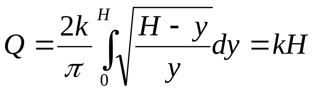 где k – коэффициент, определяемый из условия k =Qmax/Hmax. Подставляя значение Q из уравнения (7) в (6), имеем