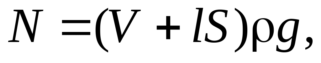 Вага поплавка 2 разом із стержнем 4 (в повітрі) Gп і підйомна сила N, що діє на поплавок визначаються формулами: