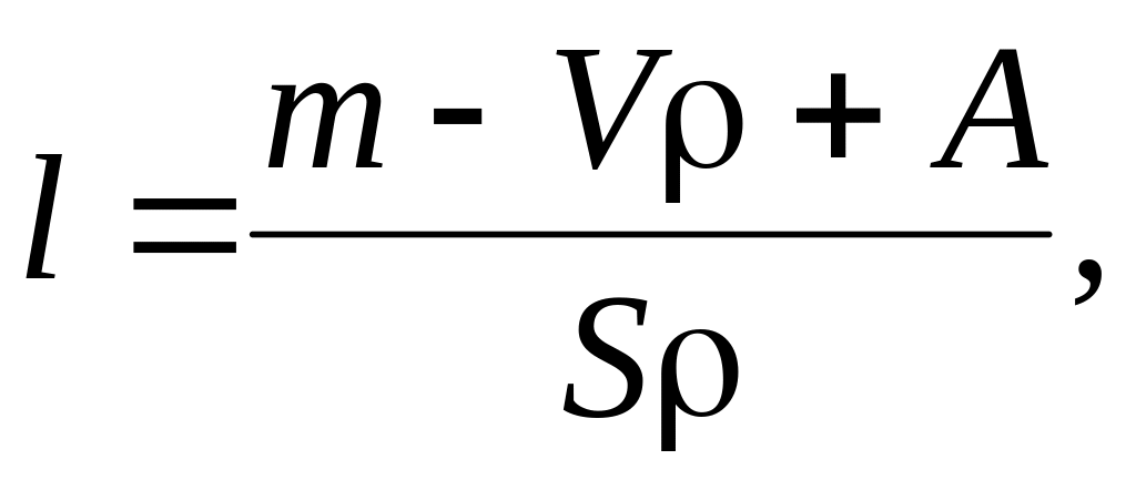 де m – маса поплавка і стержня; V – об’єм поплавка; l – довжина зануреної в рідину частини стержня; S – площа поперечного перерізу стержня.