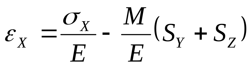В этом случае обобщенный закон Гука будет учитывать влияние на каждое из удлинений в трех направлениях каждое из трех главных напряжений.
