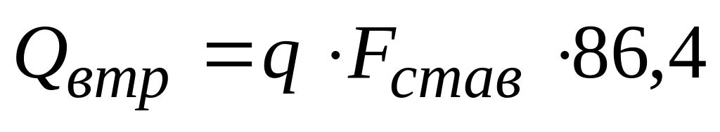 Витрата води на насичення ложа, м³/добу визначають за формулою
