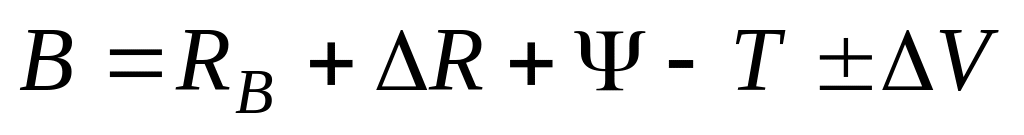 де RB – стік, що надходить з інших територій; R – стік, який формується на даній ділянці; - безповоротне споживання річкової води на ділянці; T – потрібний транзитний стік (пропуск) в замикаючому створі; V – об’єм наповнення (–) чи спрацювання (+) водосховищ, що розташовані на ділянці.