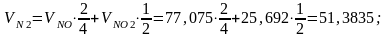 Нехтуючи незначною зміною об’єму при додаванні аміаку і відновленні, витрата оксидів азоту з газом на виході із реактора селективної очистки, м3/год.: