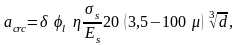 — коэффициент армирования сечения, принимаемый равным отношению площади сечения арматуры S к площади сечения бетона (при рабочей высоте h0 и без учета сжатых свесов полок), но не более 0,02; d — диаметр арматуры, мм.